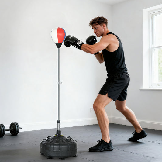Soozier Free Standing Punching Bag, Height Adjustable Boxing Bag with Fillable Base, Pu-Wrapped for Youths Adults Fitness Training, Home Gym Use, Multi-colour