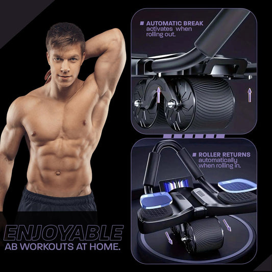 Rodillo abdominal de rebote automático revolucionario con alfombrilla para rodillas: mejora tu entrenamiento básico con temporizador y contador digital.