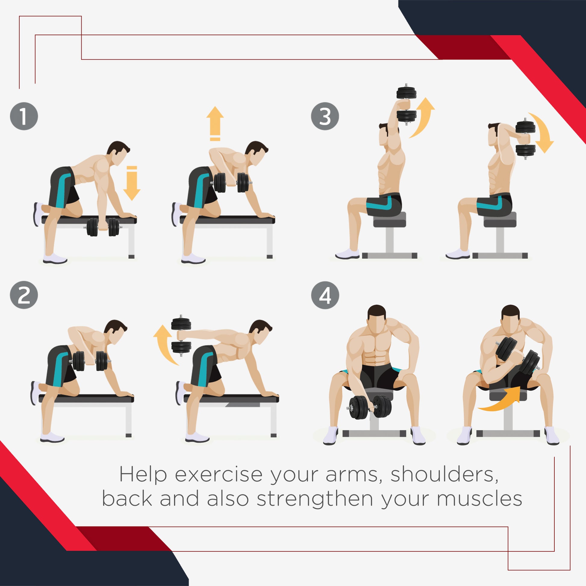 - • Help exercise your arms, shoulders, back and also strengthen your muscles