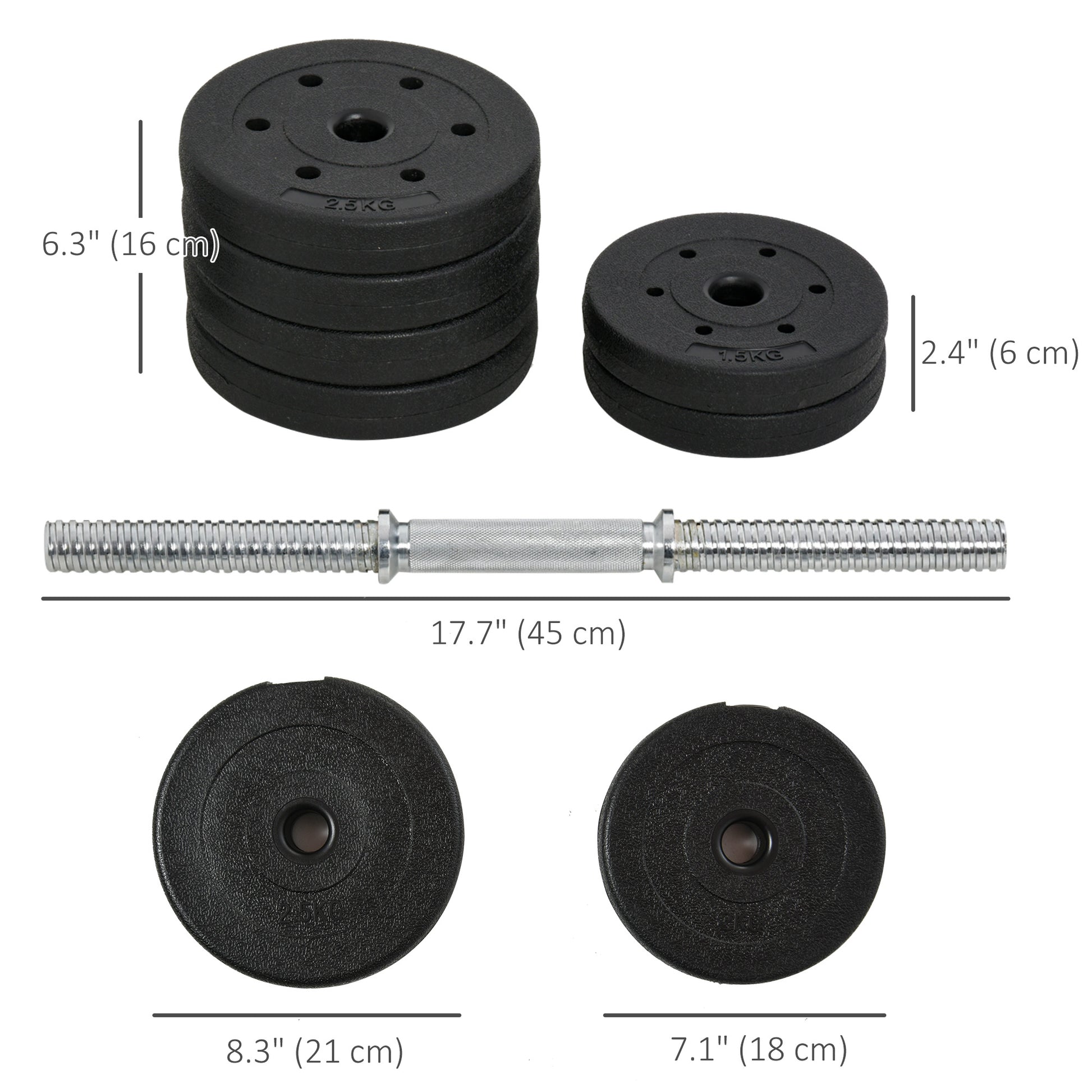- • Complete with pair include 8 x 5.5 lbs (2.5 kg), 4 x 3.3 lbs (1.5 kg) weights and 2 x 4.4 lbs (2 kg) connecting rods
