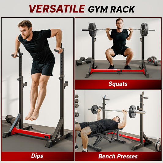 Soozier Squat Rack, Power Rack with Adjustable Height & Width, Strength Training Equipment with Barbell Storage Racks & J-Hooks for Bench Press, Squat, Weight Lifting
