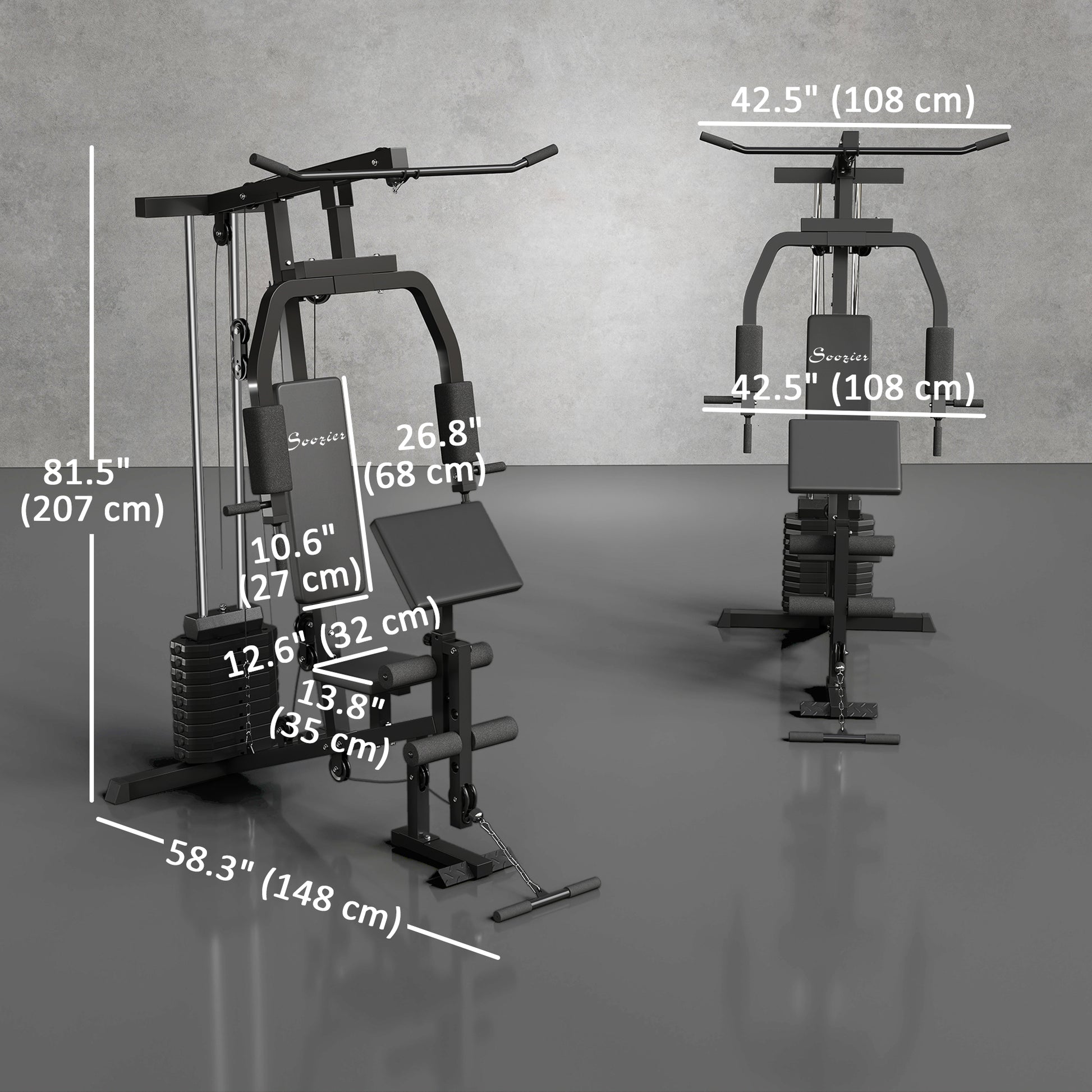 Soozier Multifunction Home Power Exercise Gym System Weight Training Exercise Workout Station Fitness Strength Machine for Whole Body Training Black